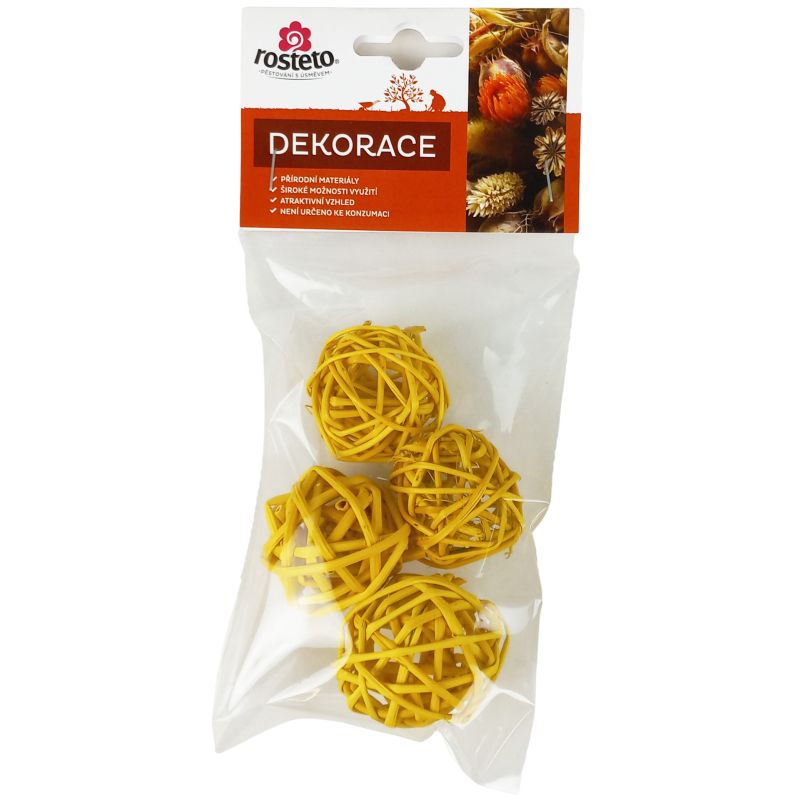Sušená proutěná dekorace ve tvaru kuliček o průměru 4 cm ve žlutém provedení. Dekorační přírodní prvek pro věnce, mísy, i sezónní výzdoby.