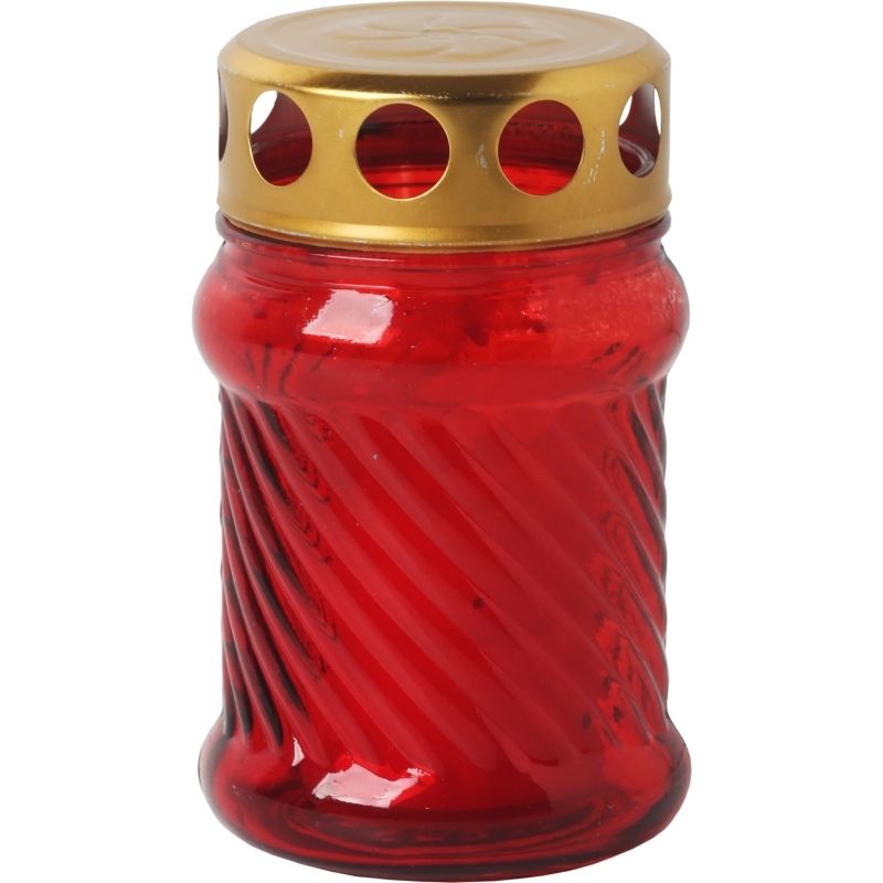 Svíčka ve skleněném obalu různých barev. Její součástí je plechové víčko, které slouží jako ochrana před povětrnostními vlivy. Doba hoření až 13 hodin.